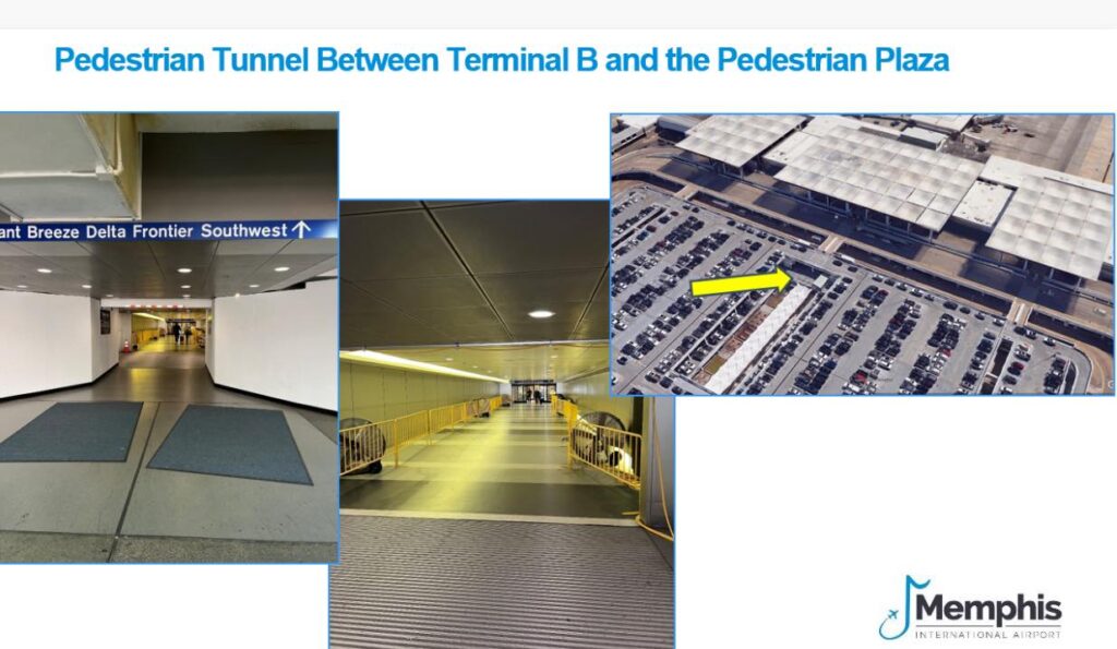 Memphis, Tenn. (October 21, 2025) – The next phase of our Terminal Modernization project is moving ahead of schedule. Effective October 21, 2025, the Pedestrian Tunnel between Terminal B and the Pedestrian Plaza is closed until March 2026.